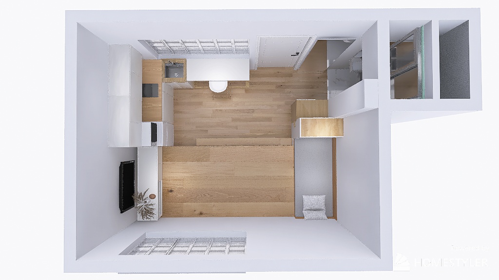 The requirements were met by designing a simple Japanese inspired modern space with neutral colors, placing mirrors for visual enhancement and sufficient storage space for a temporary stay.