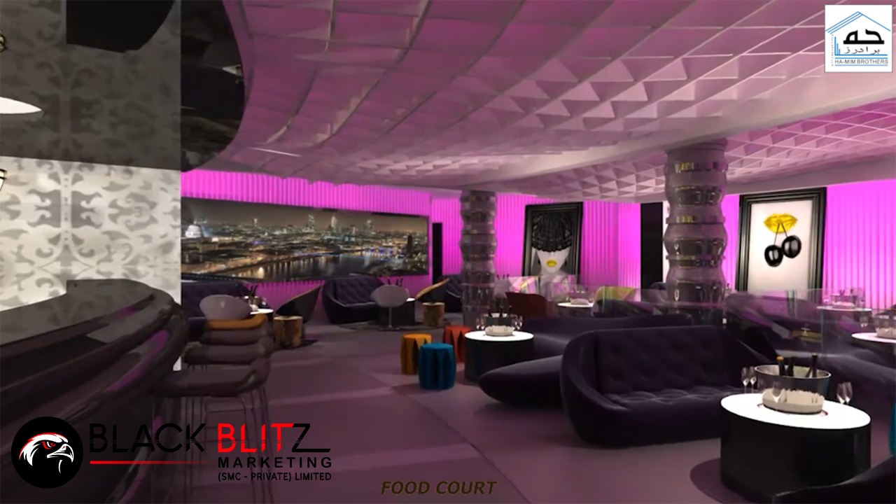 A multi story Commercial building having 3 floors for parking, 2 commercial, 2 offices, 2 apartments, 1 food court.