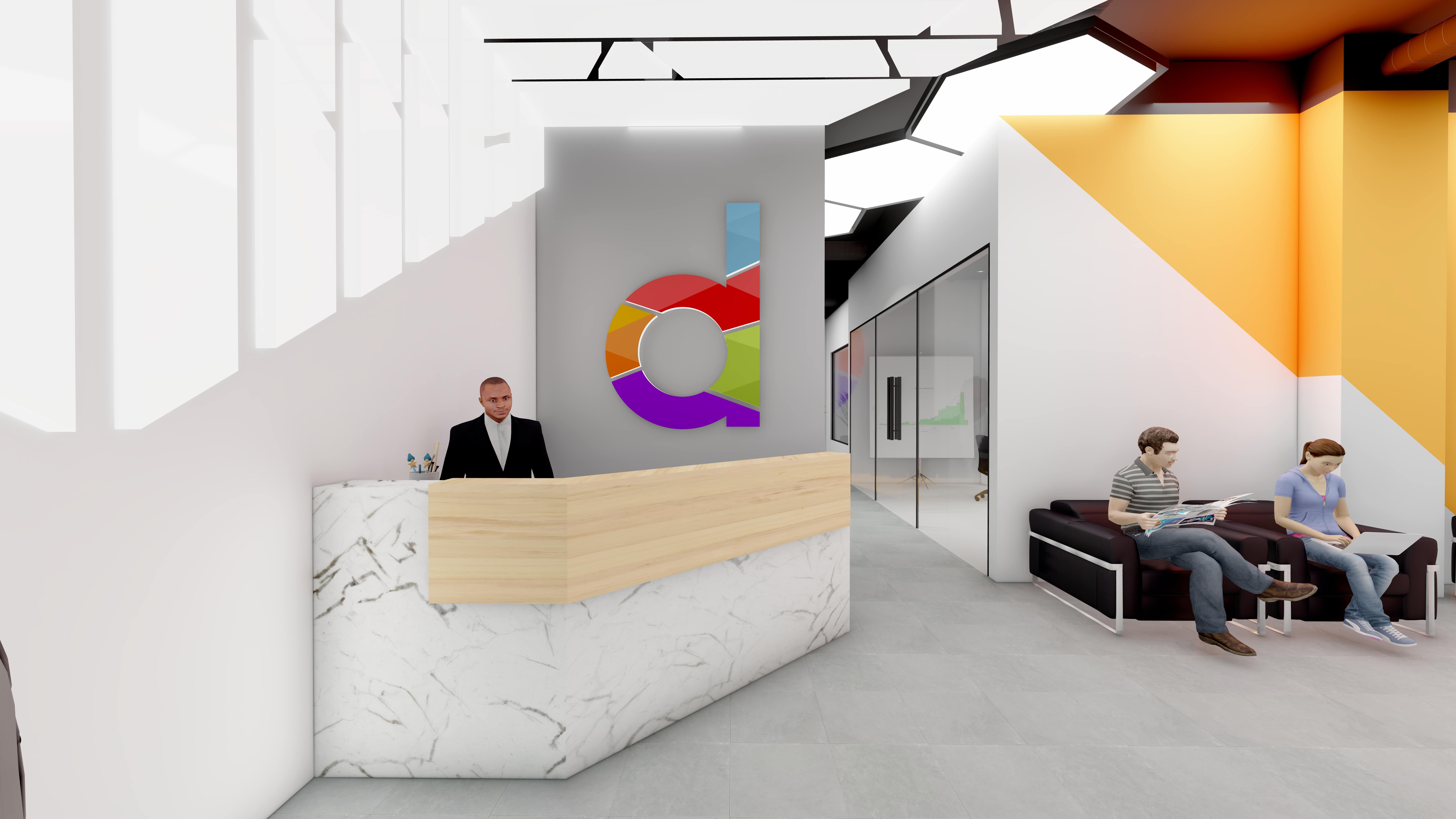 Reception Area of an office with a partial view of the waiting area.