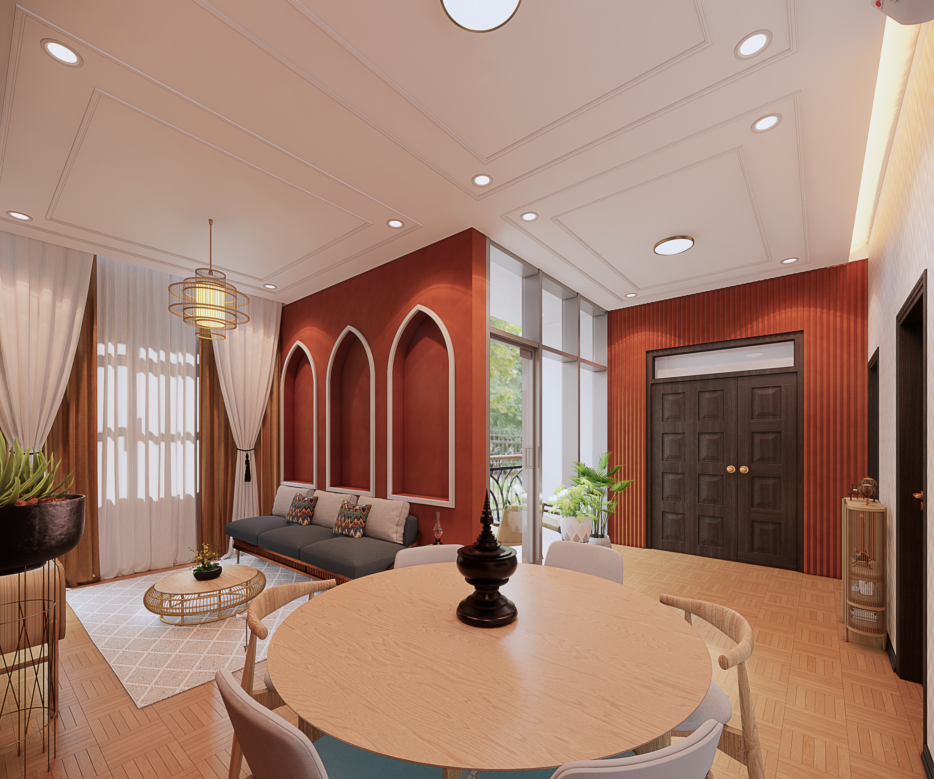 So, We created the Interior design & propose likes a modern Burmese theme.