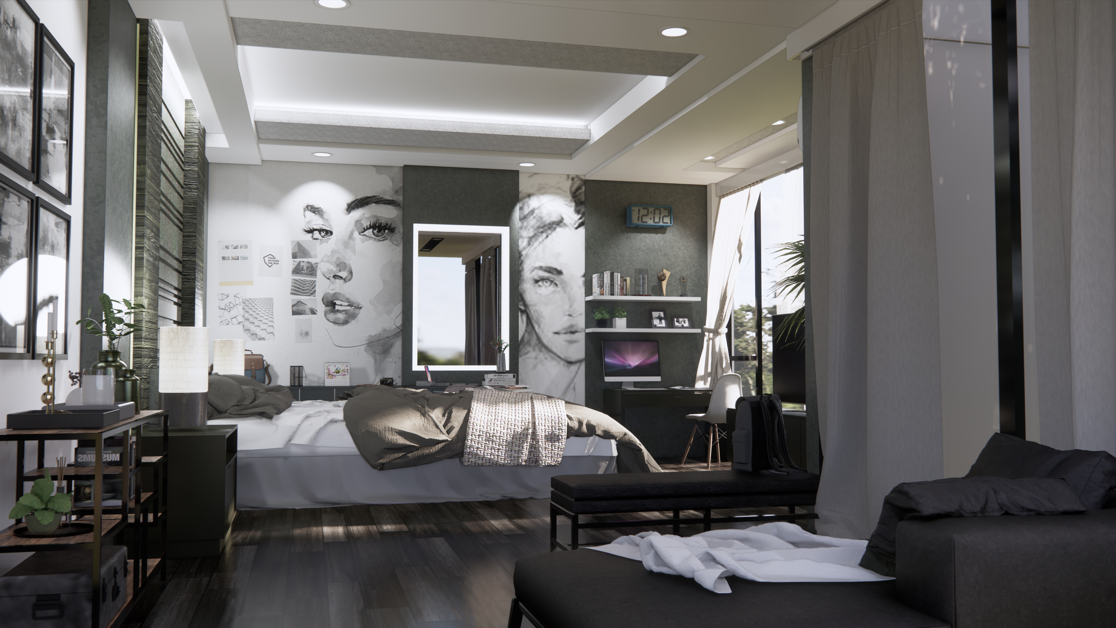 Elegant Girl's bedroom with Lounge, Vanity and Study Area.