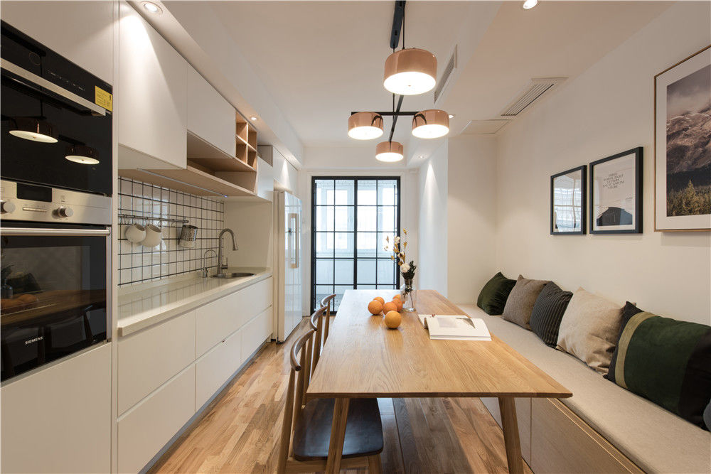 Combining a bit of Japanese style, the overall main change is in the restaurant part, with a large table and a console, so that the housewife can call the children to participate in the housework. The ingenious layout and unique design make The home is more transparent and light