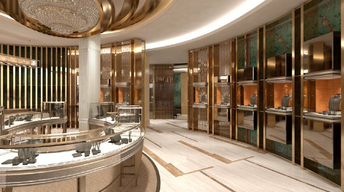 The interior design structure of this jewelery store is very clear, with bright and vivid colors, in line with the aesthetic design, making people comfortable and pleasant