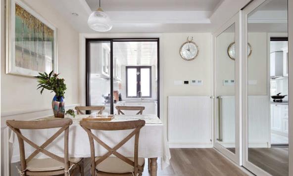 The kitchen specially uses three-fold doors to let more light into the dining room. It is unavoidable to touch the wall when it is used, and it is easy to cause the wall to wear. Therefore, the wooden wall panel is specially selected to decorate the wall, which is easy to take care of. At the same time, the wooden wall panel is not easy to wear, which is a good solution to this problem)