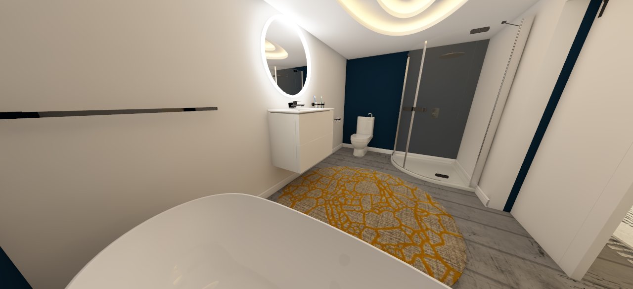One-bedroom house interior design, with kitchen, living room, and bathroom. Comfortable and beautiful.