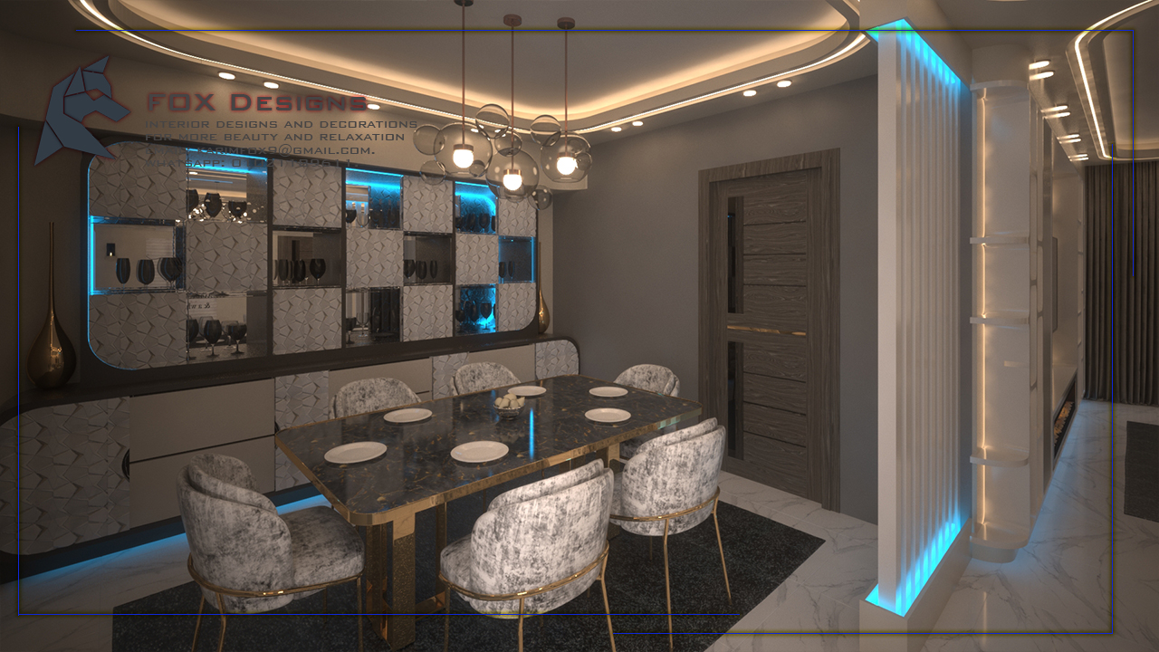 This is tv unit designed specially to the interior with curved edges to match with ceiling curves .