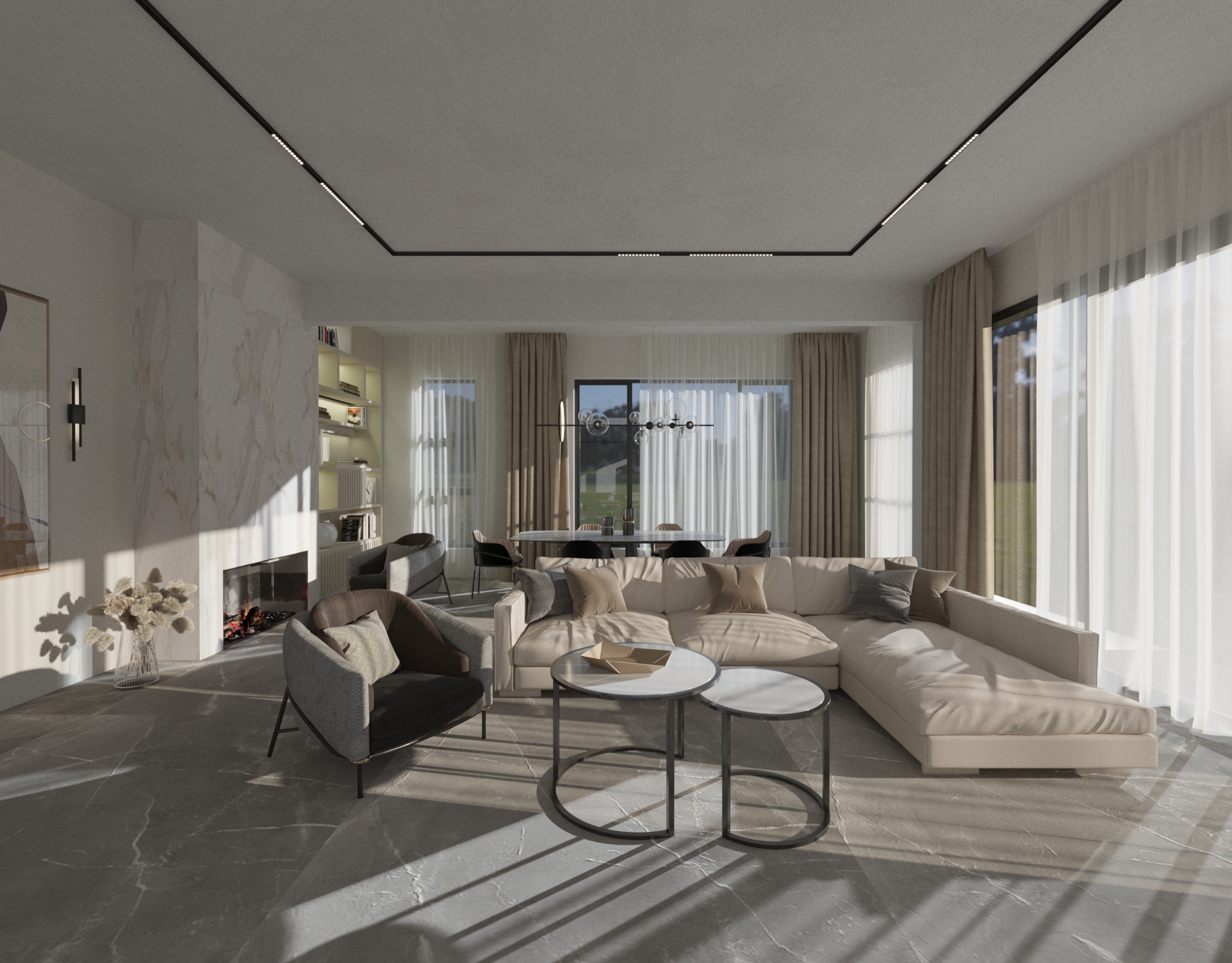 Modern living room in Batumi Cozy fireplace area