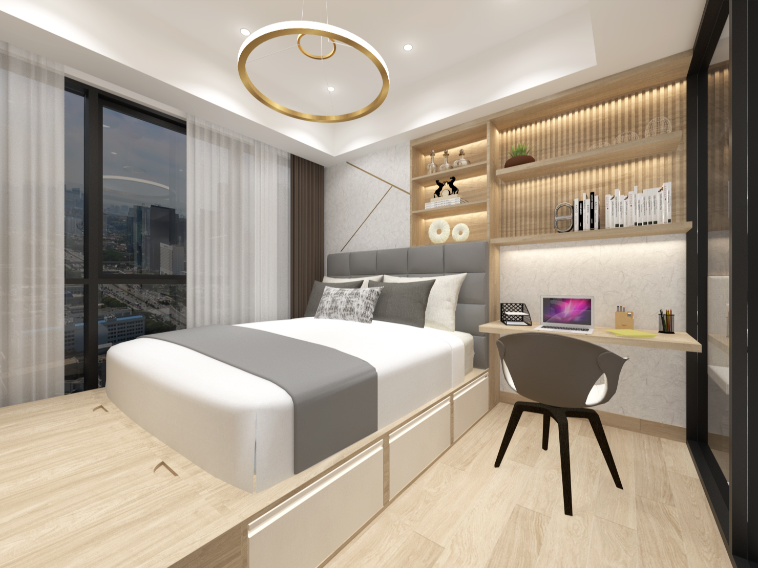studio size apartment, brief minimalis style and she want this apartment full with hidden storage so it can fit any things.