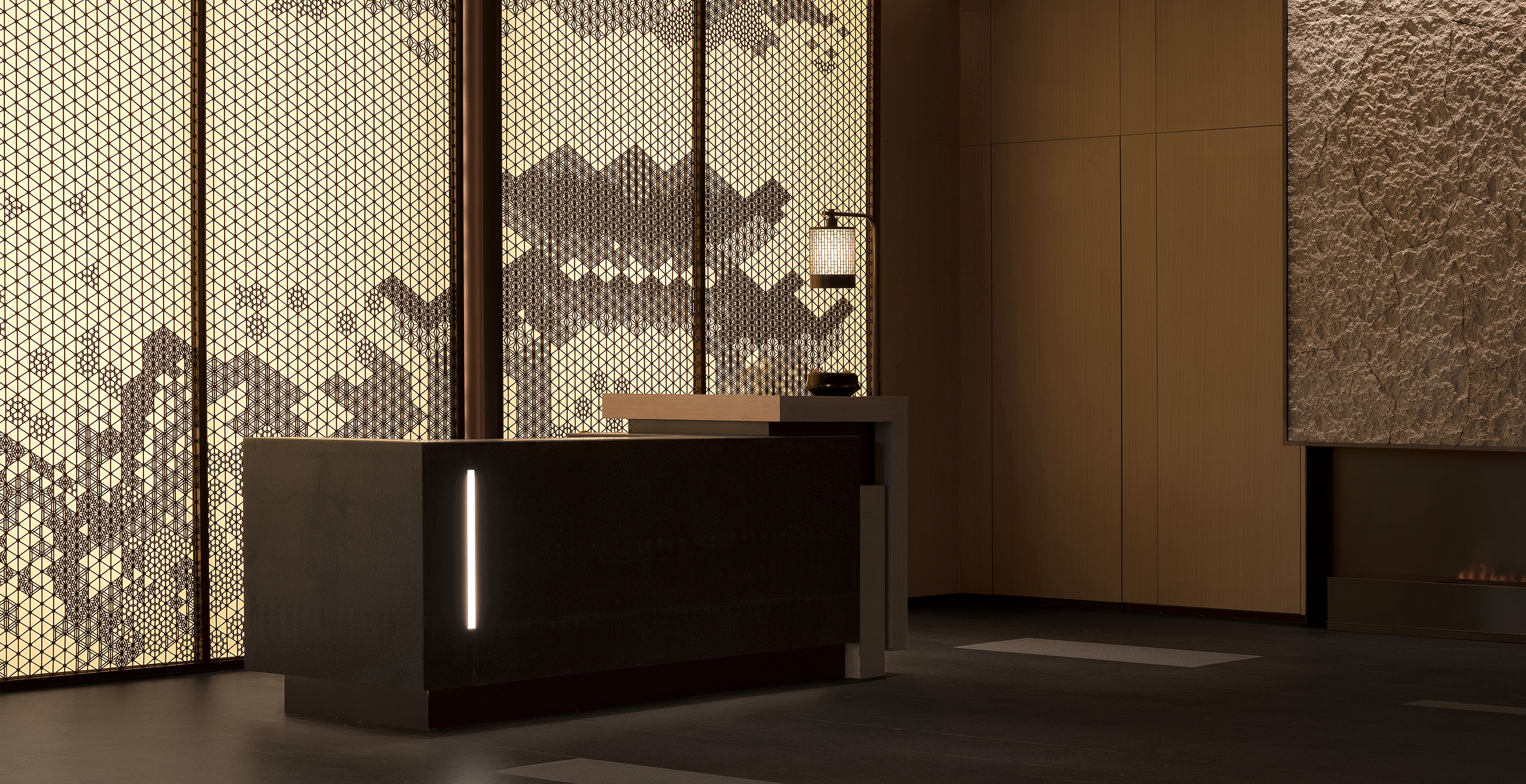 The beauty of the East lies in its gentleness. As a whole, the Oriental artistic conception is interpreted in a subtle way. The gray stone and linear wood grille in general give the space simple and warm, low-key and real texture changes, quiet and light colors, and wake up the senses with details, making the overall atmosphere of the space comfortable and relaxed.