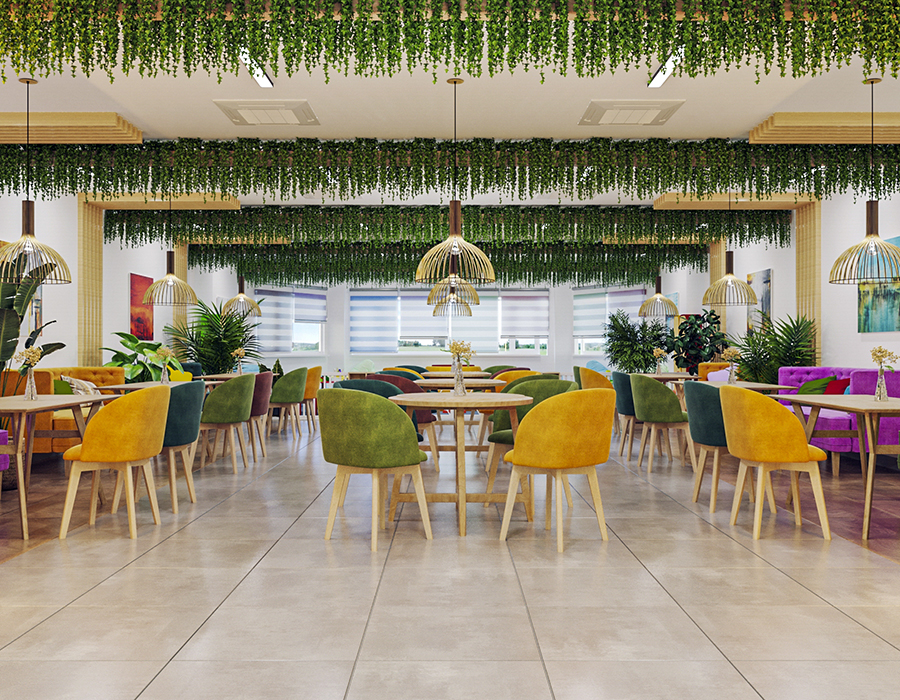 Wonderful cafe interior design project for both parents and children, family summer cafe
