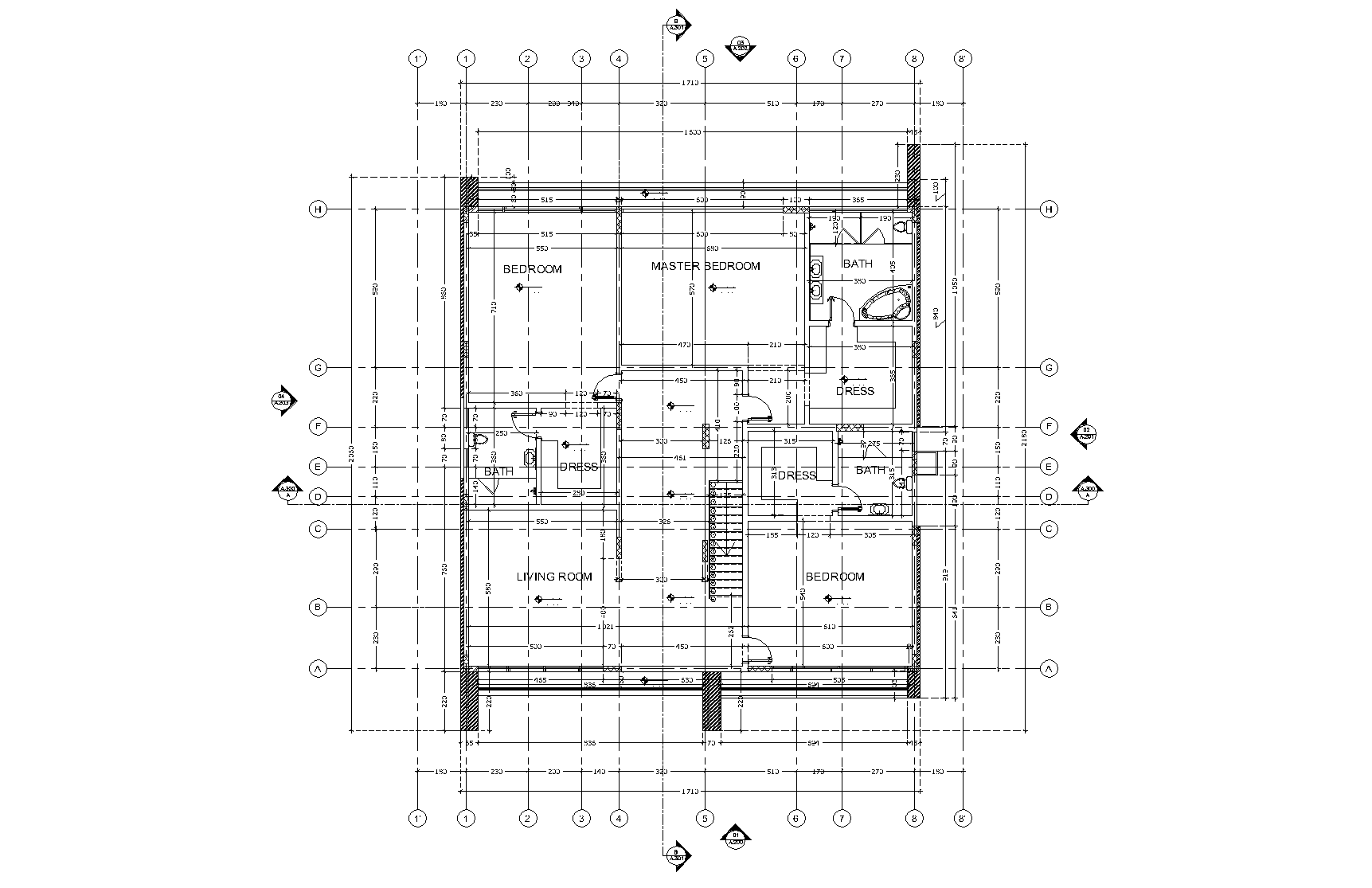 The first floor is designed for privacy and comfort, featuring a spacious master bedroom with an en-suite bathroom and dressing area, along with two additional bedrooms, each with its own en-suite and dressing. A central family living room provides a cozy gathering space, while the layout ensures efficient circulation and a luxurious, modern ambiance.