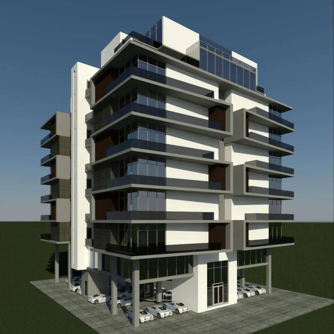 This Mixed Use project is a proposed Condominium of Twelve 2-Bedroom Duplexes with BQ each, Ground Floor Parking and 2 Commercial Office Apartments on the Pent Floor.