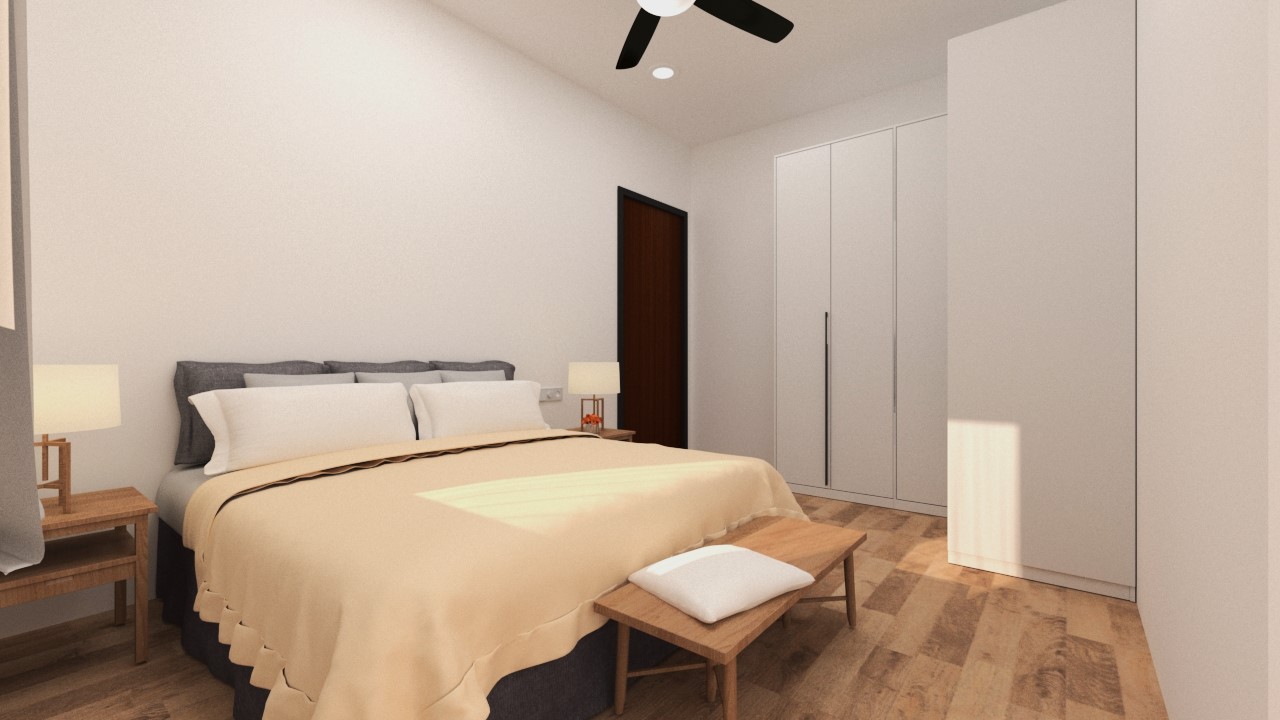 A lot of wooden texture for furniture and flooring combine with white color material furniture to bring out the simple and cozy feel.