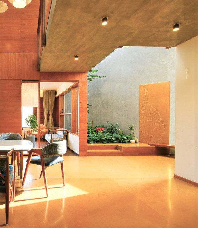 The Gleaming Brown Interior Design radiates warmth and sophistication. Rich brown hues, polished textures, and strategic lighting create an inviting ambiance. This design plays with contrast, mixing deep browns with brighter accents to achieve balance. The result is an interior that exudes a cozy yet refined feel, where the interplay of light and texture adds depth and character to every corner, making it a space that's both elegant and inviting.