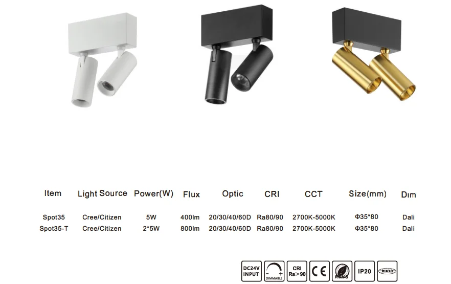 ECOJAS Spot35-T 2*5W Latest desirable 3000K/4000K/6000K adjustable magnetic led track light