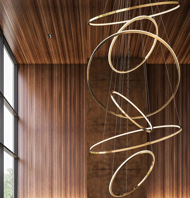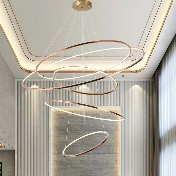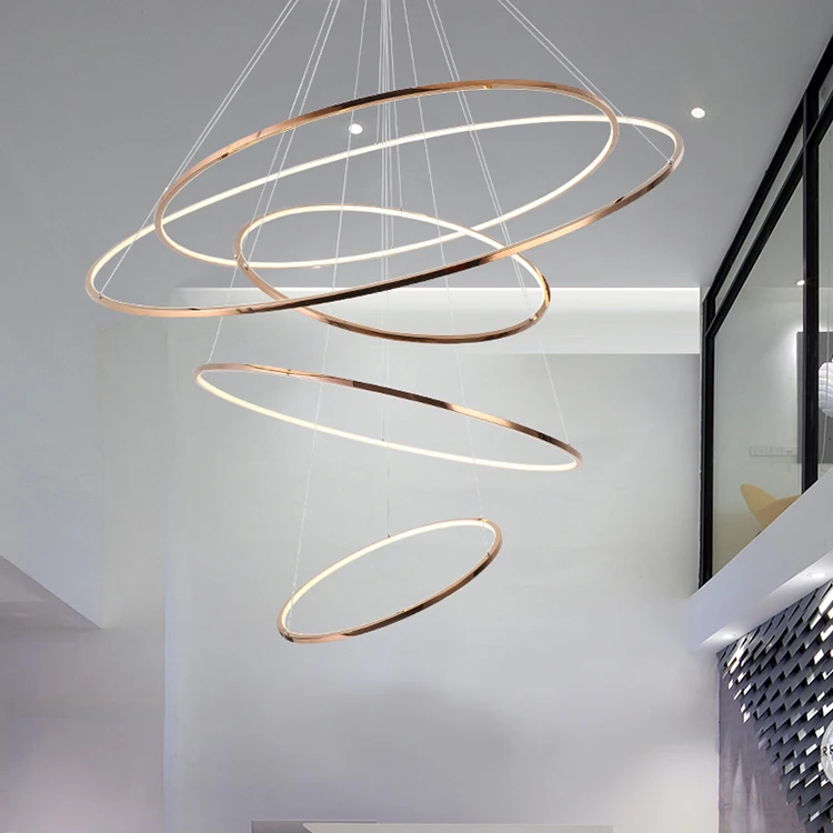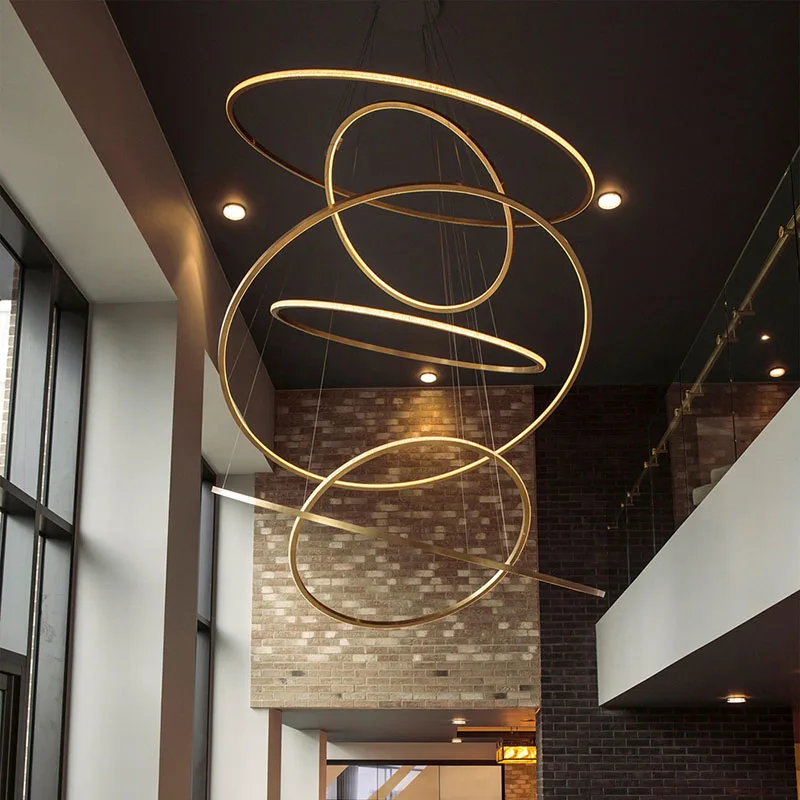 Wholesale contemporary minimalist decoration large size high ceiling mounted ring pendant lighting chandelier
