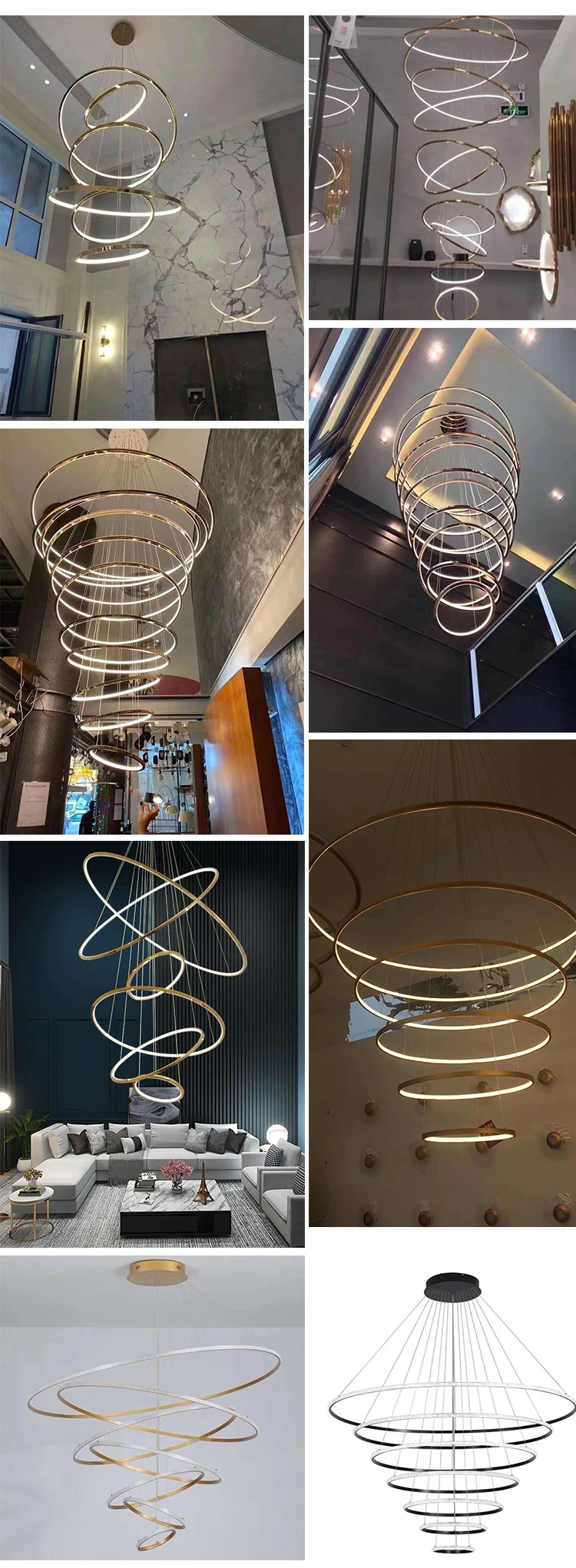 Home Lighting, Artwork & Interior Decoration Accessories Indoor Customized Lighting Pendant Lights Wholesale contemporary minimalist decoration large size high ceiling mounted ring pendant lighting chandelier