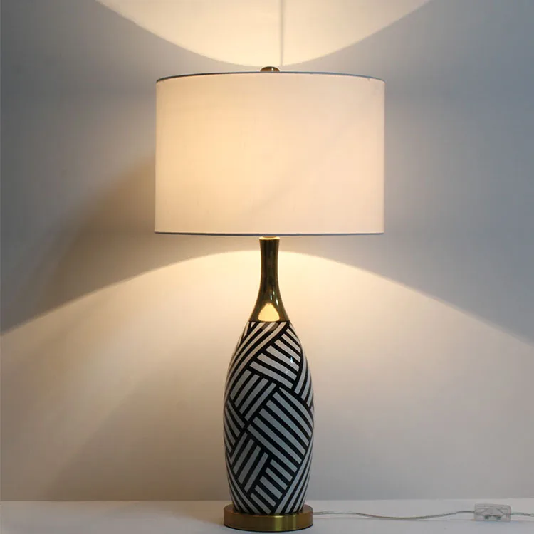 Home Lighting, Artwork & Interior Decoration Accessories Indoor Customized Lighting Desk Lamps Modern Simple Hotel Room Light Black And White Striped Ceramic LED Desk Lamp For Bedroom Bedside