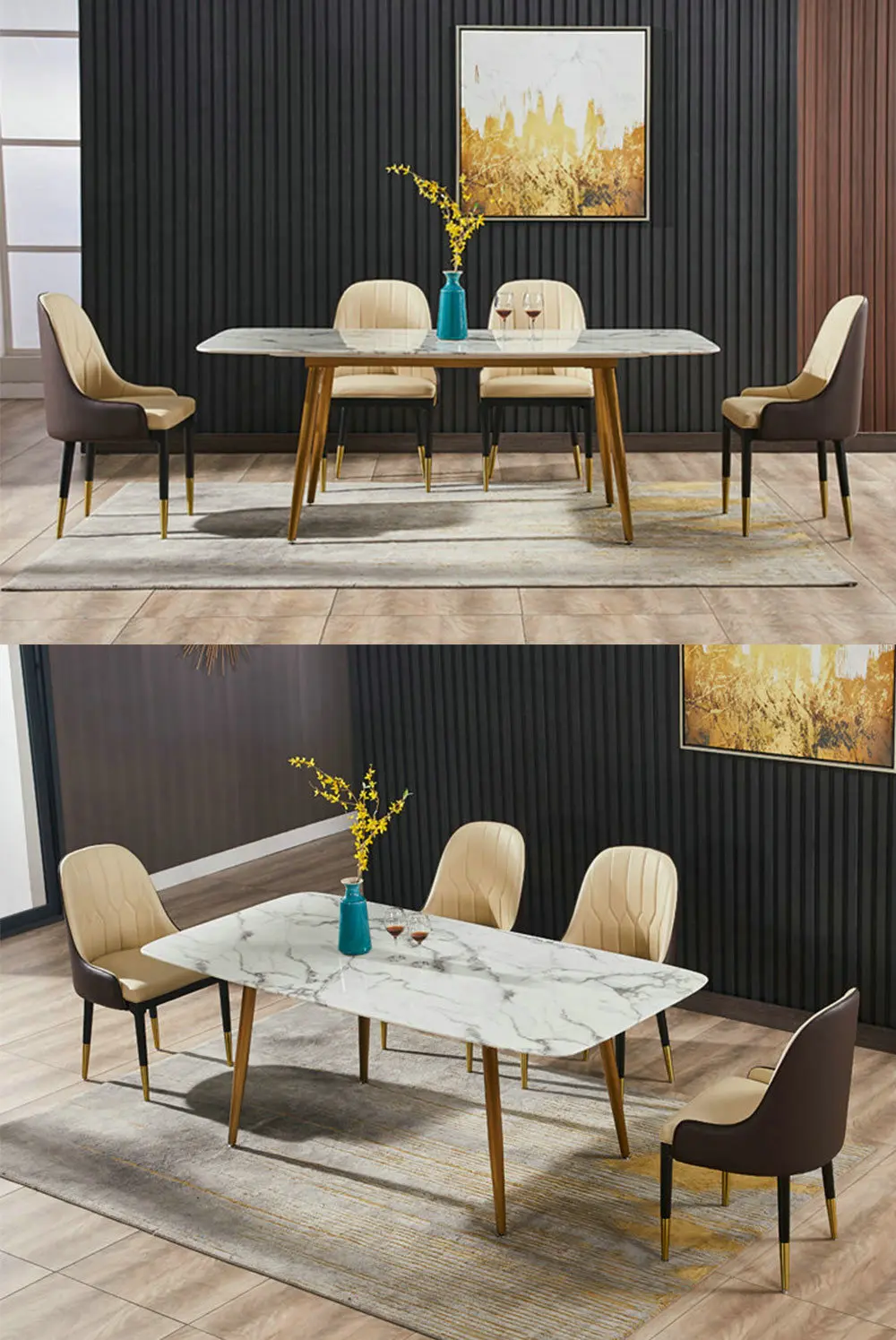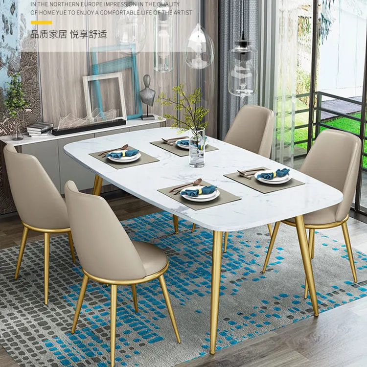 Home Movable Housing Furniture & Household Appliances Dining Room Furniture Dining Room Sets Nordic design golden stainless steel frame marble cover dinner table