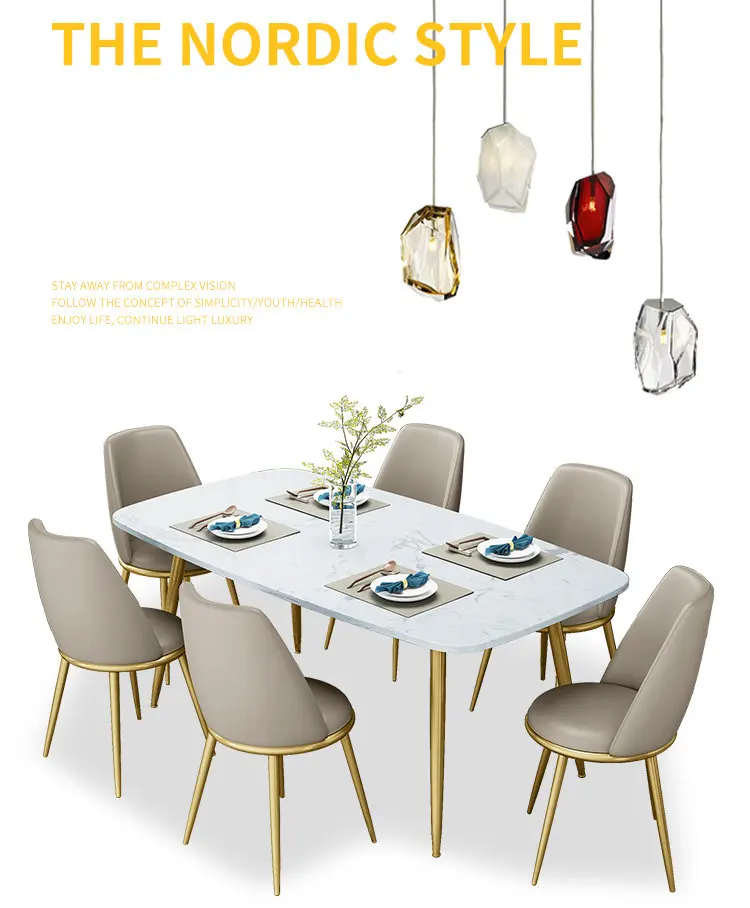 Nordic design golden stainless steel frame marble cover dinner table