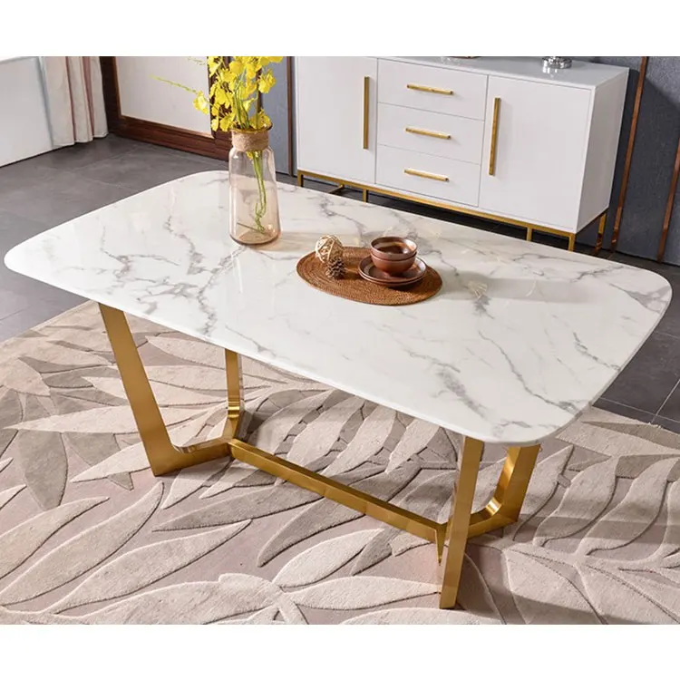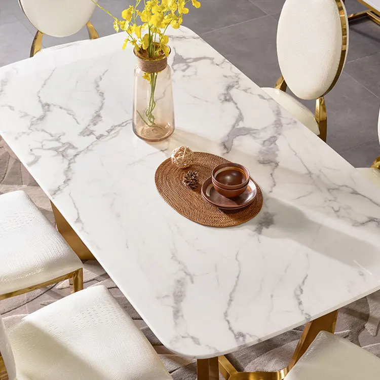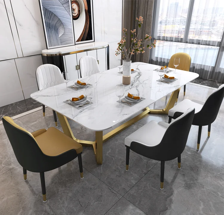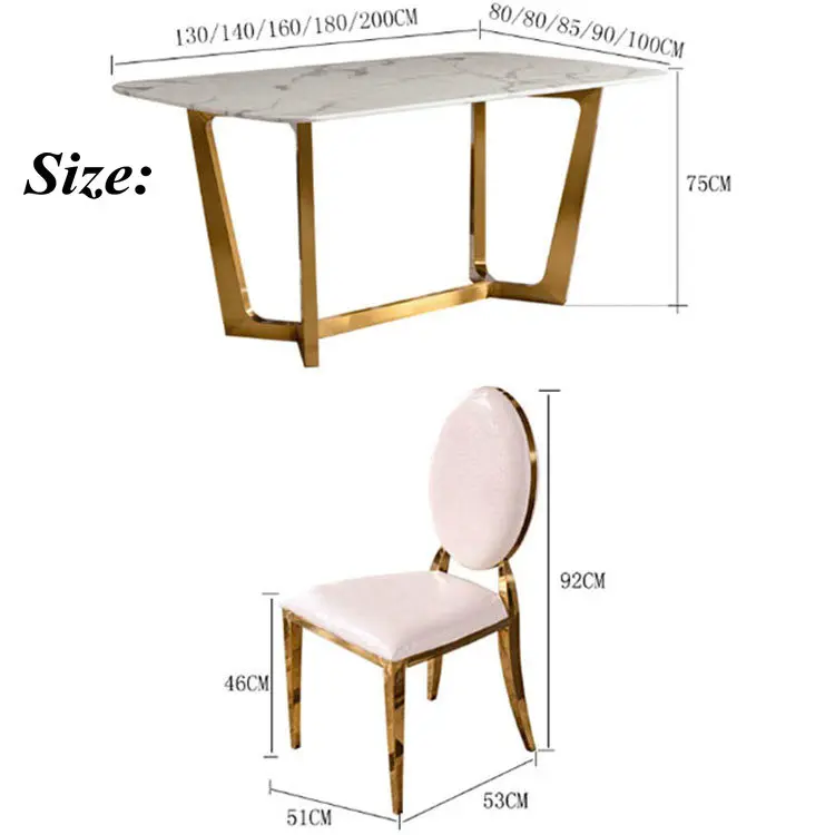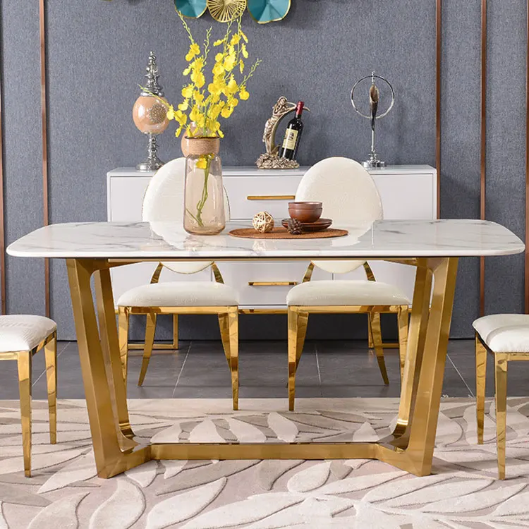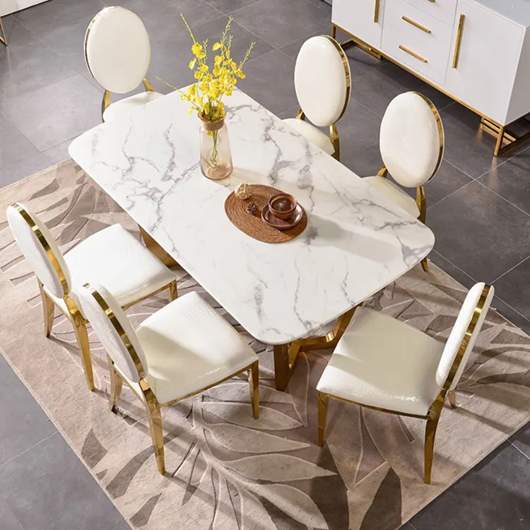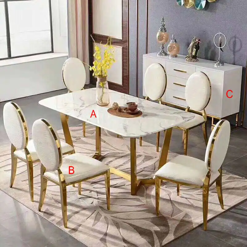 Home Movable Housing Furniture & Household Appliances Dining Room Furniture Dining Room Sets Affordable luxury golden stainless steel frame dinner table with chairs