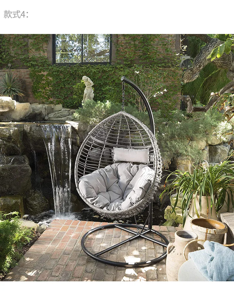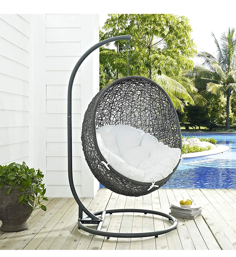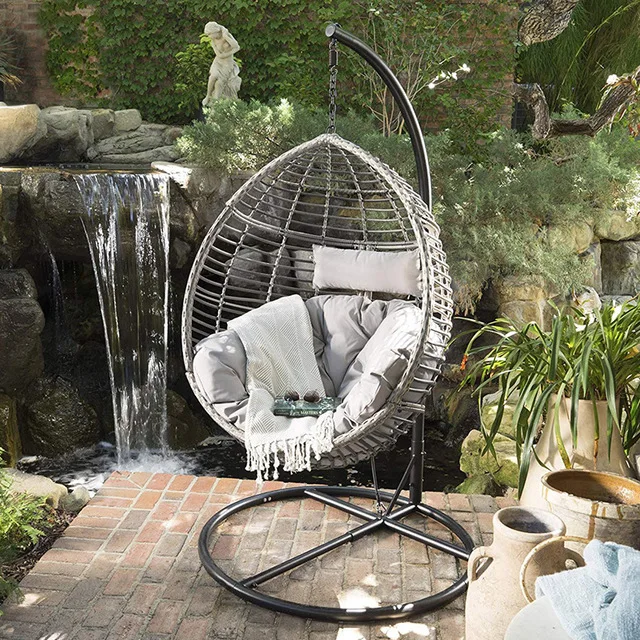 New style outdoor leisure rattan chair hanging chair with cushion bird's nest shaped swing hanging chair for vacation hotel