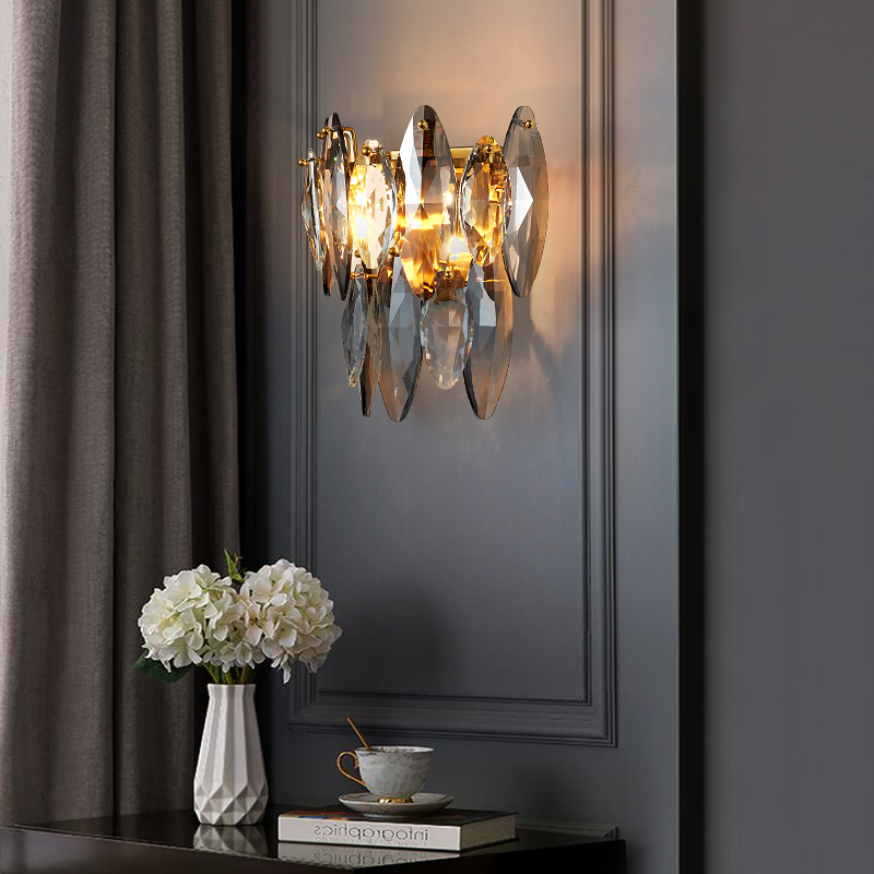 Material | High quality smoke+clear K9 crystal+French gold plated iron fittings |