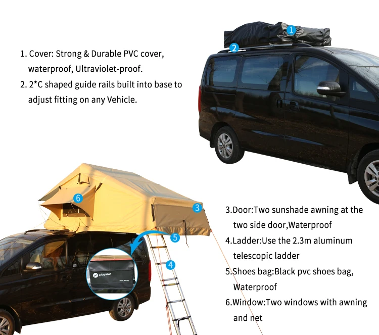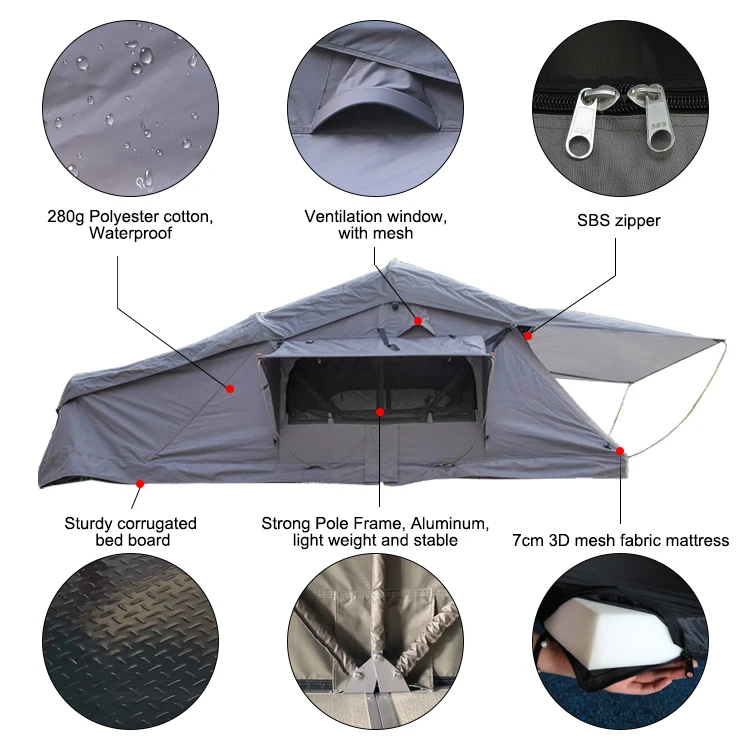 Soft 4x4 roof tent and awnings are ready within minutes, so you can relax and enjoy the outdoors. Manufactured from durable high quality poly/cotton breathable fabric, your mould and water proof roof top tent fits neatly onto the roof of your 4x4. A sturdy aluminium retractable ladder allows for easy access. Mattresses come with a 65mm high-density foam mattress with a removable cover. With fully screened windows and doors. dustproof and insect-resistant.
