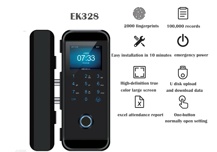 Home Doors, Windows ,Curtains & Signage Door Accessories Hinge Dongguan Yinlang Electronic Co., Ltd. 2020 New Glass Fingerprint Door Locks Smart For Office Keyless Digital Glass Door Lock