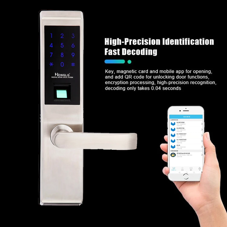 App control smart digital fingerprint password home door lock with Anti-theft mortises and USB external power supply