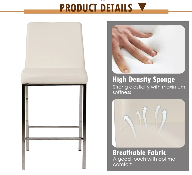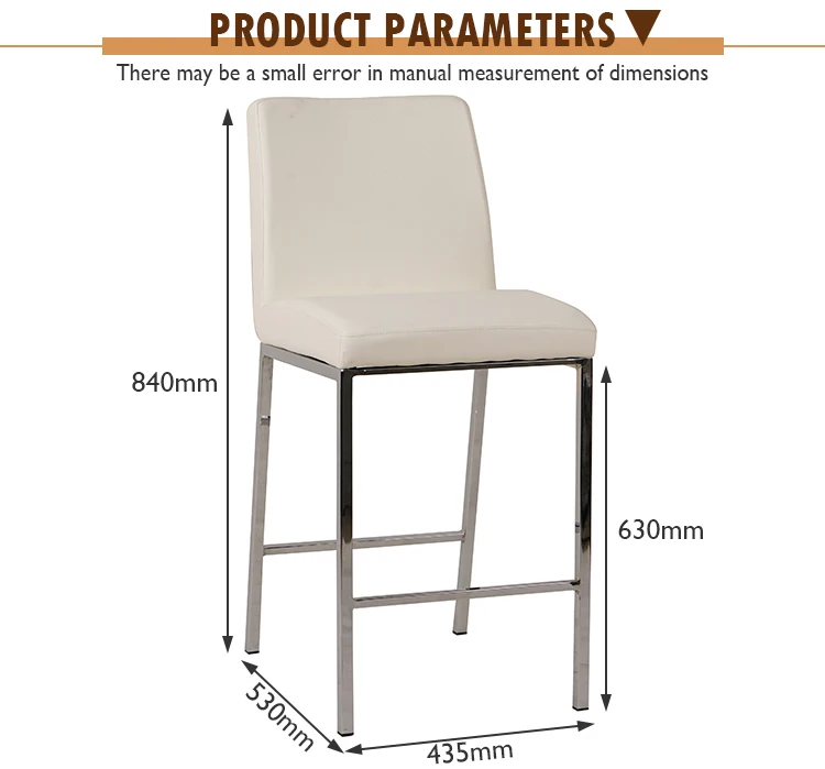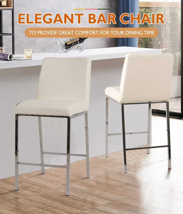 Square Factory Price Modern White PU Leather Bar Chair With Metal Legs