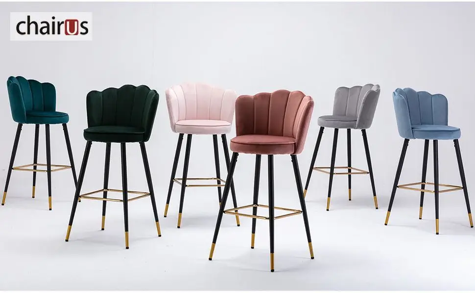 Home Movable Housing Furniture & Household Appliances Dining Room Furniture Bar Chair Langfang Aurora Trading Co.,Ltd Upholstered Curved Backrest Petal Design Metal Frame Golden Footrest Velvet Bar Stool For Breakfast Home Counter Kitchen Island