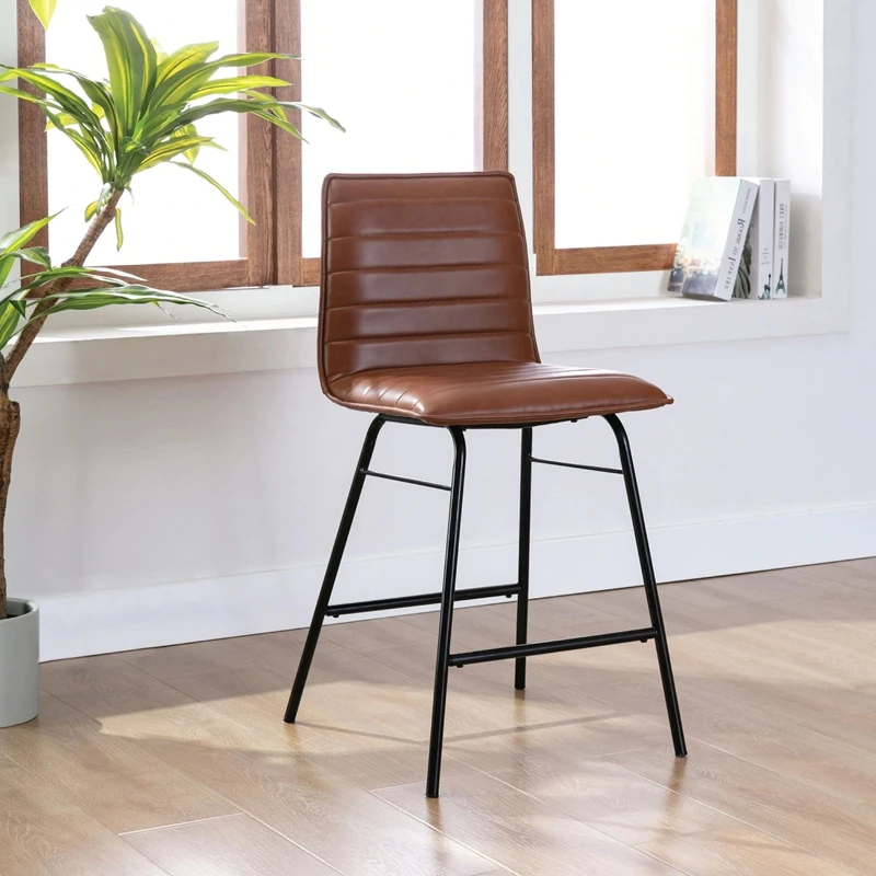 Home Movable Housing Furniture & Household Appliances Dining Room Furniture Bar Chair Langfang Aurora Trading Co.,Ltd Modern Curved Backrest Backrest Metal Frame Faux Leather Brown Retro Bar Stool For Kitchen Breakfast Home Bar