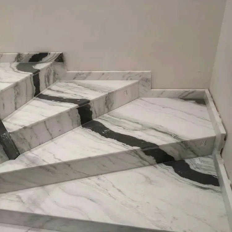 Chinese Supplier Polished Natural Panda White Marble With Black Veins Stair Step Slab