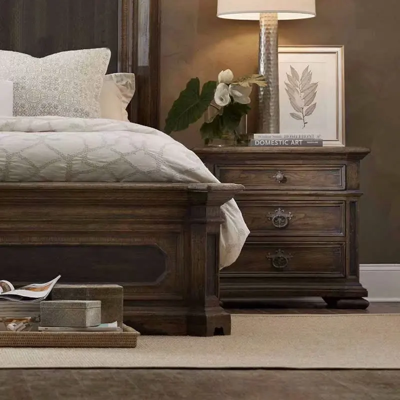Custom furniture American-style bedroom Retro old solid wood bedside table