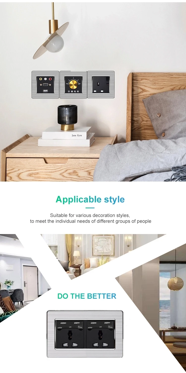 3 Pin British UK Wall Electric Outlet 10 Years Warranty USB Socket