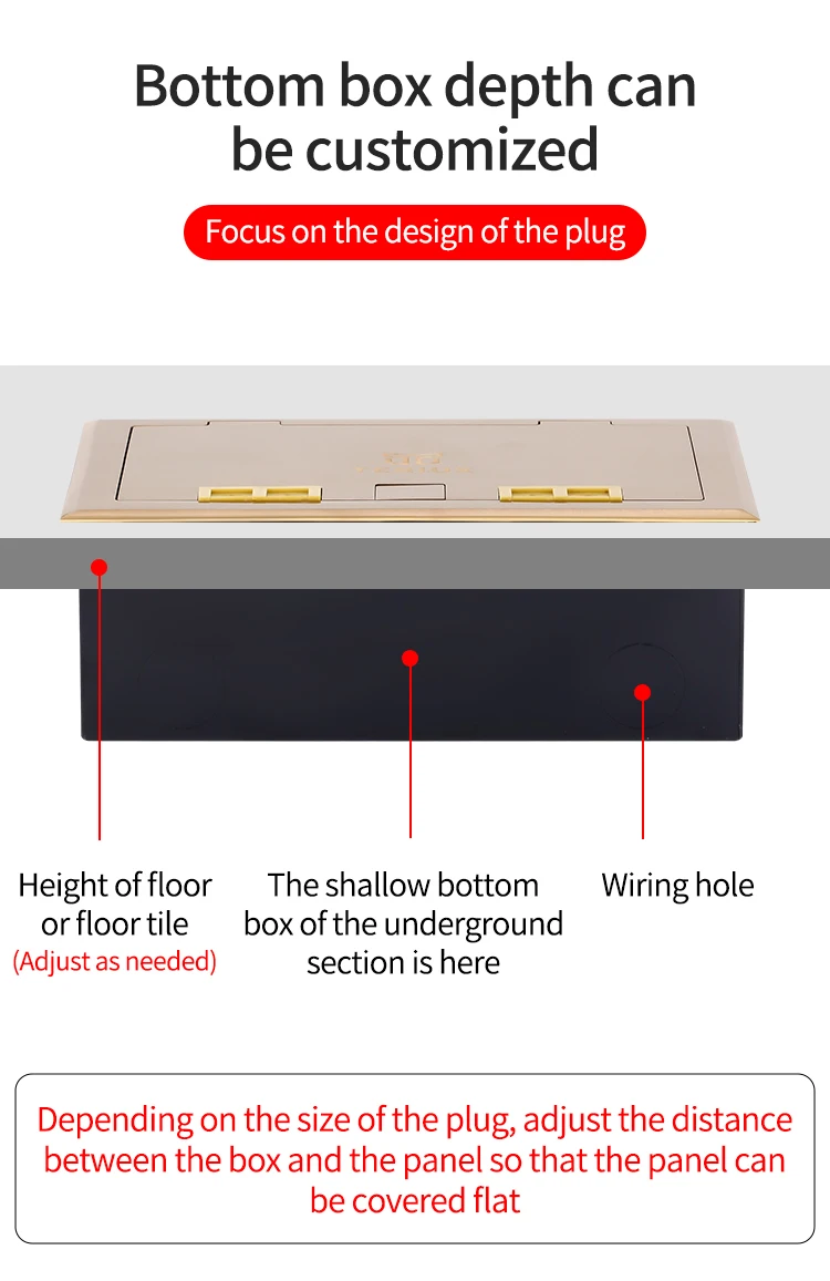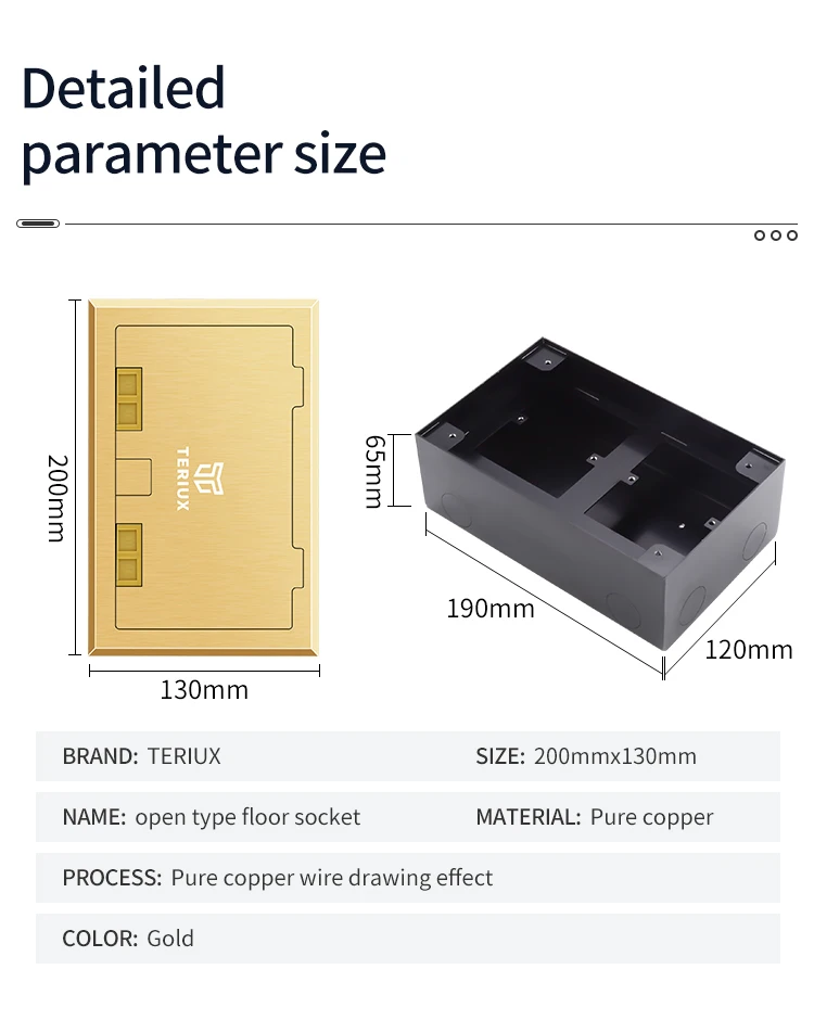 Home MEPF Equipment & Electrical Sockets & Plugs Zhejiang Teriux Electric Co., Ltd. Teriux clamshell 2 outlets floor socket box pure copper floor receptacle pure copper outlet box for home