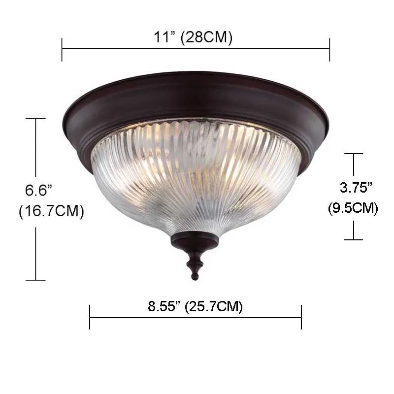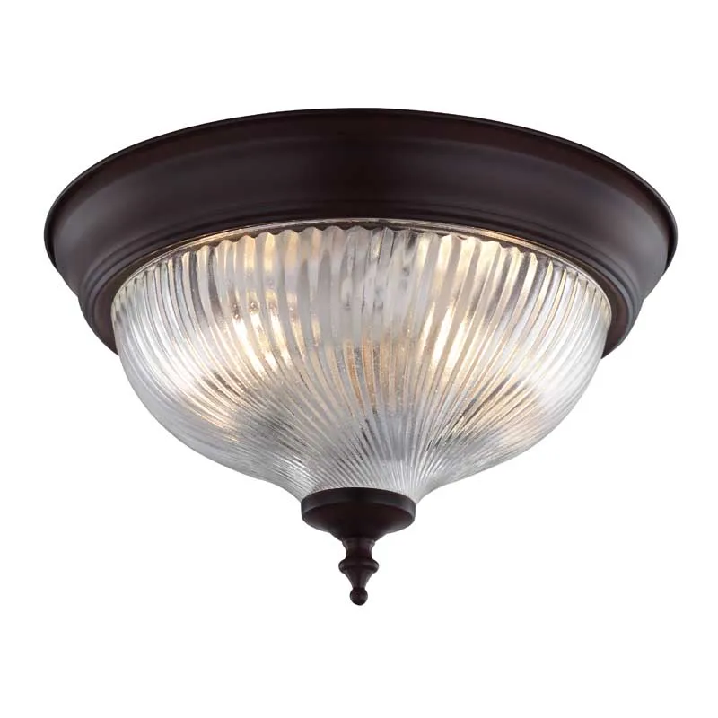 Traditional flush mount 2-light clear ribbed glass with ORB finish for living room Led Ceiling Lights