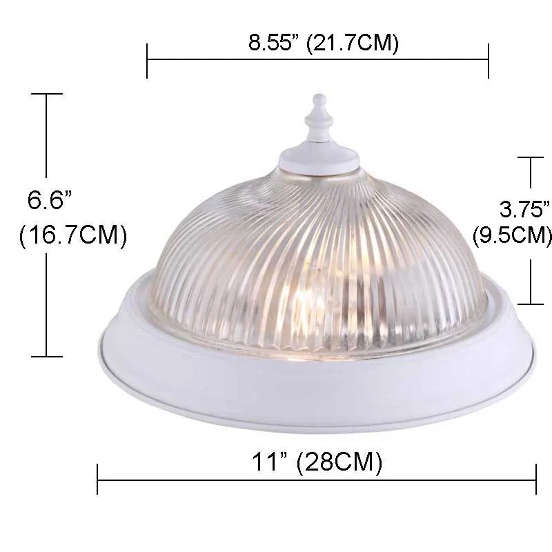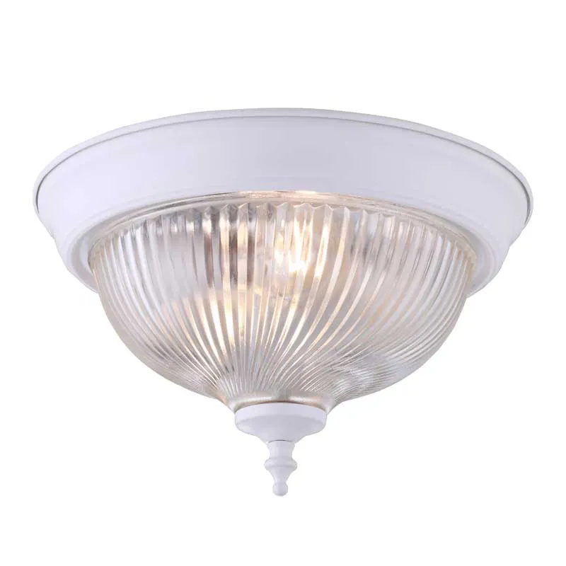 Traditional Decorative LED Ceiling light white and clear ribbed glass shade for home flush mount