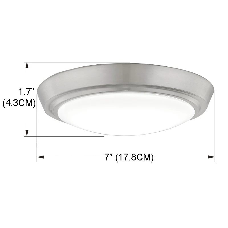 7" LED 5000K single kelvin flush mount plastic shade and brushed nickel LED ceiling lights