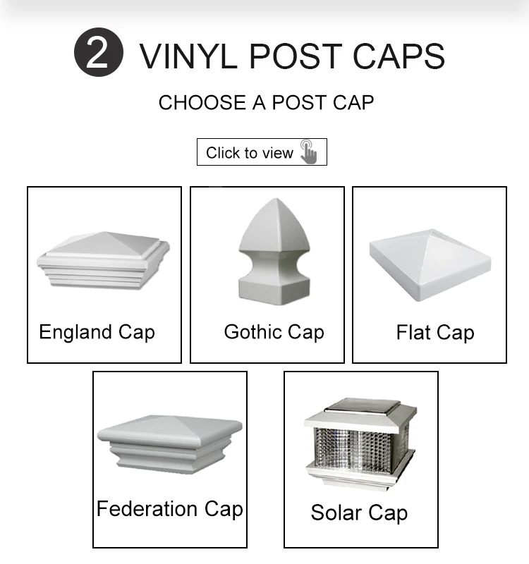 Add some style and elegance to your fence with the New England post cap .The beautiful vinyl post cap fits 5 posts and will look fabulous for years to come.
