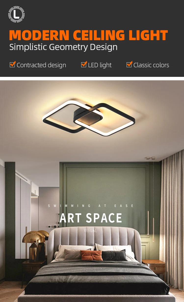 Indoor Led Ceiling Light Square Shape Modern Popular 42w 55w Lamp Lighting Slim