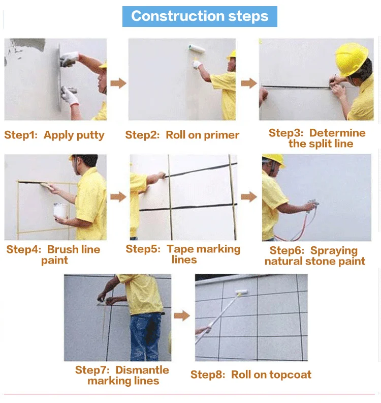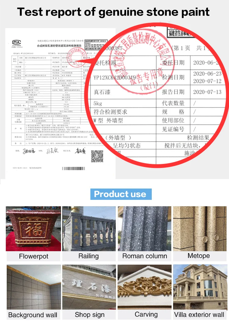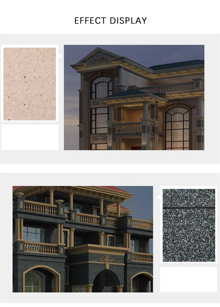 For existing colors, different water-based building paint, different MOQ. MOQ of granite paint is 25kg for smooth effect and 25kg for rough effect, lead time is 3-7 days.