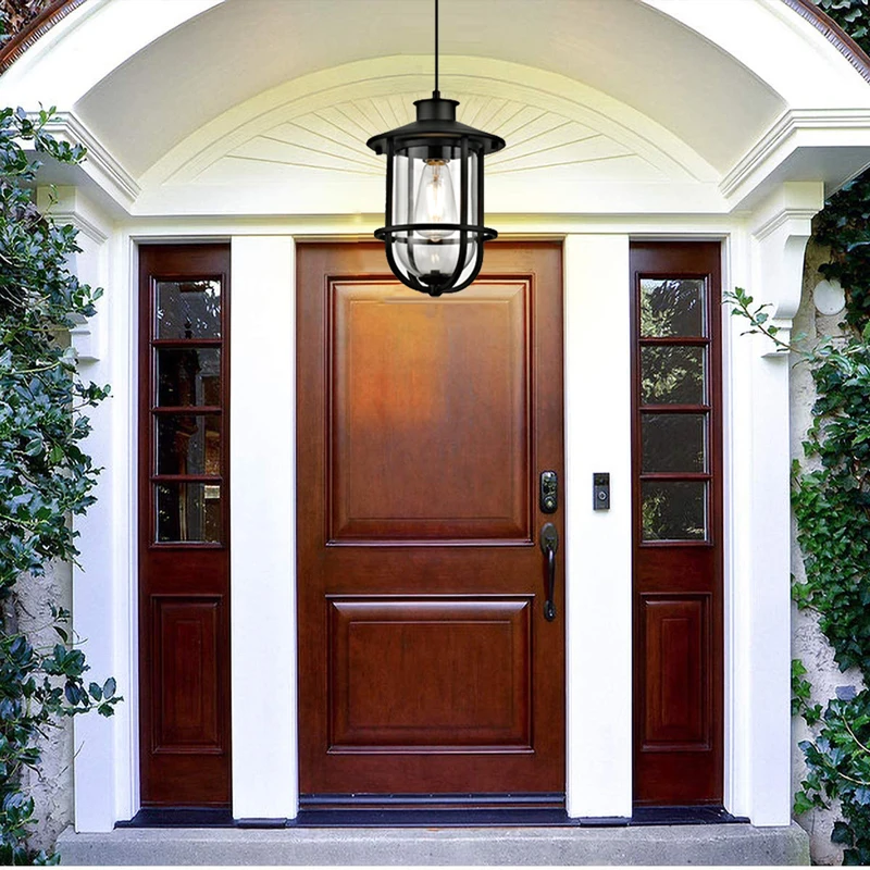 Home Lighting, Artwork & Interior Decoration Accessories Outdoor Lighting Outdoor Wall Lights Foshan Field Smart Lighting Co., Ltd New design outdoor pendant light 1 light bronze finish clear glass shade ceiling light for lobby modern chandelier