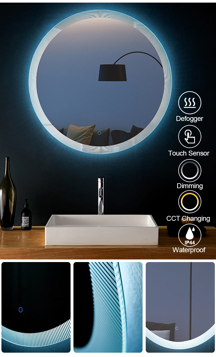 Luxury Stainless Steel Frame LED Lighted Bathroom Wall Mounted Mirror Vanity Touch Control