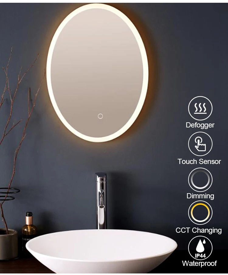 Hot Sale Hotel Oval Smart Led Lighted Mirror Bath Mirror 5mm Silver Mirror Bathroom Decoration Illuminated Anti Fog
