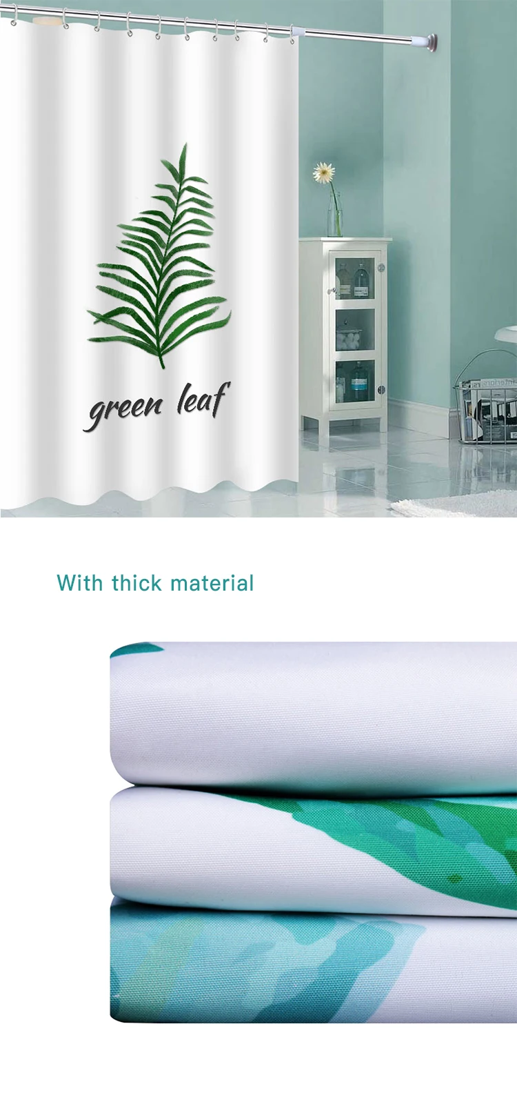 100% Polyester Fabric Bath Curtain Green Leaves Printed Shower Curtains Waterproof for Bathroom Home Decor