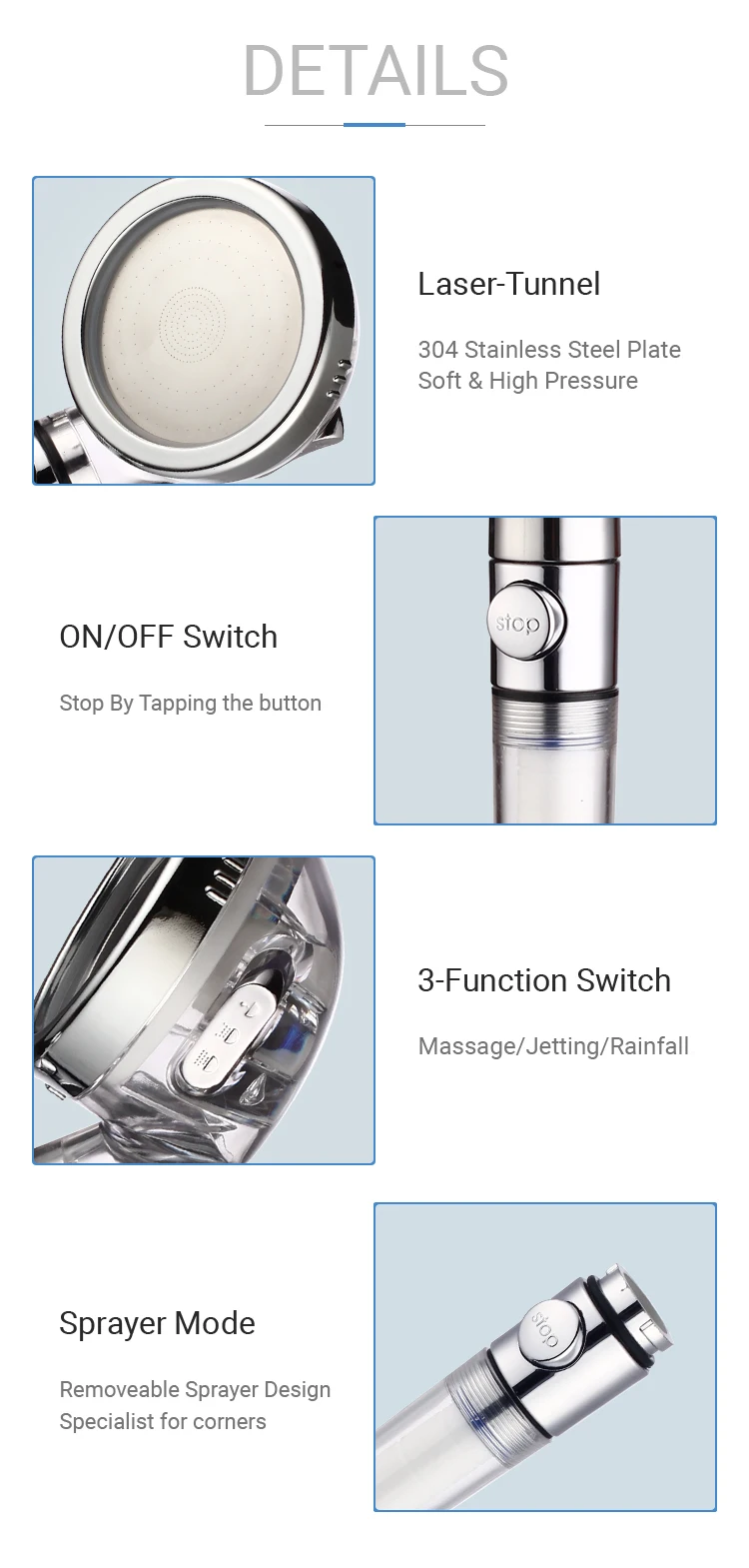 Home Bathroom Products,Sinks Bathroom Faucet & Shower Bathtub & Shower Faucet Accessories Xuzhou Xinpaez Water Purification Equipment Co., Ltd. Water Saving Top Bathroom Handheld Hand Filter Plastic High Pressure Shower Head