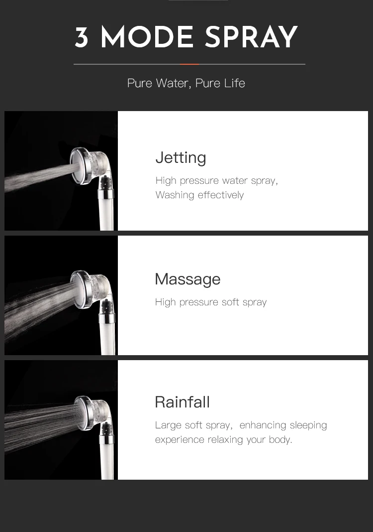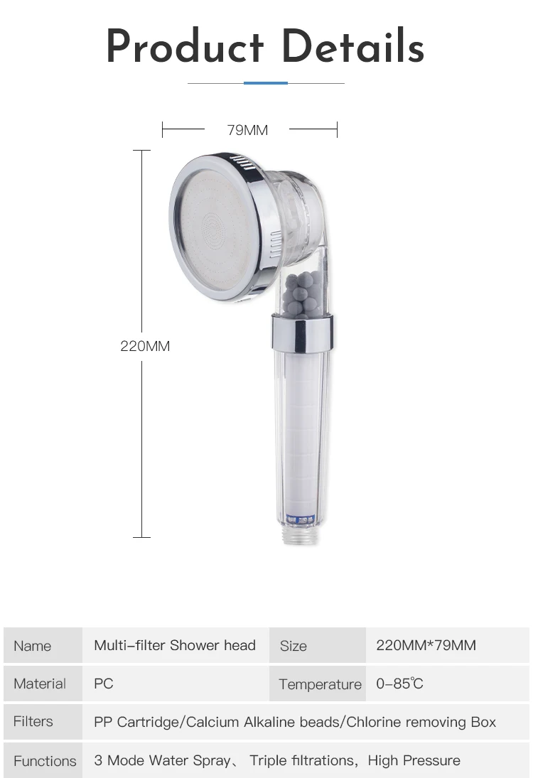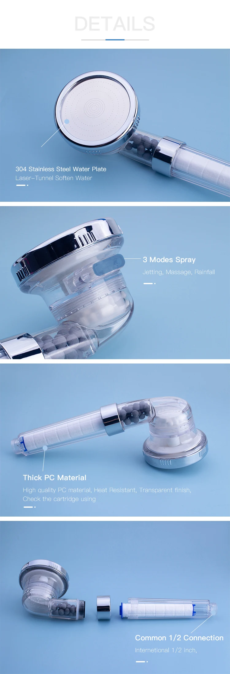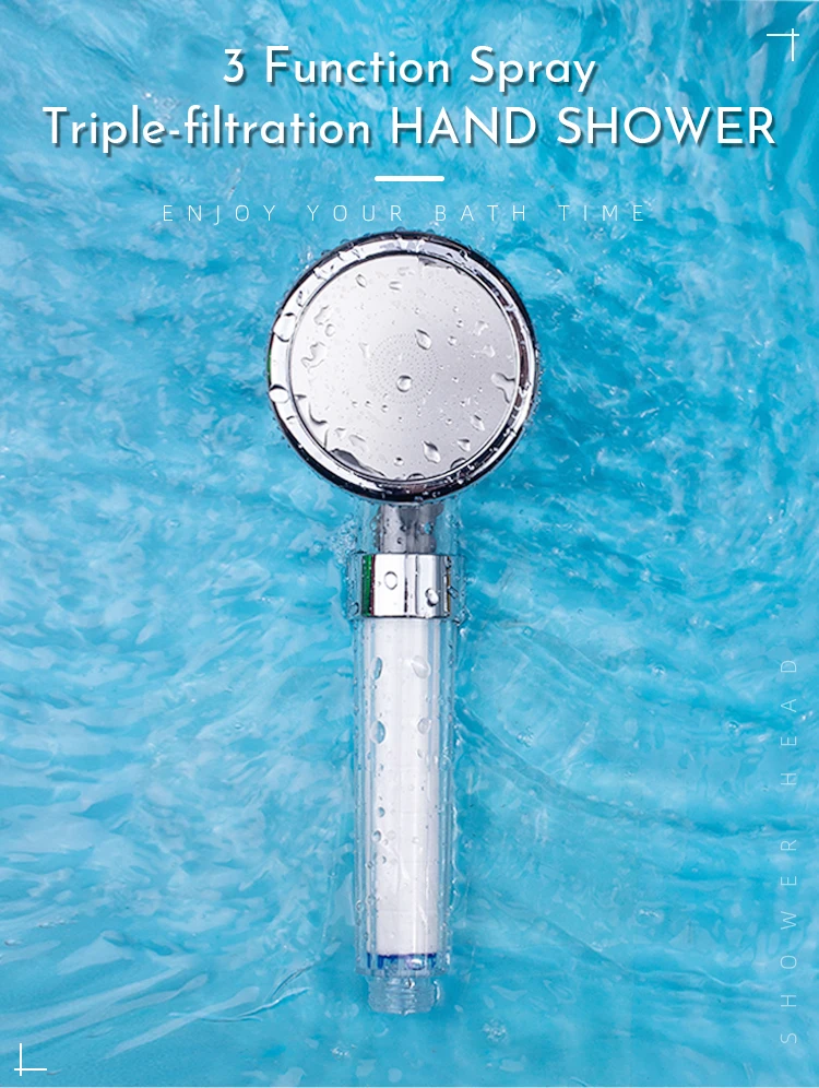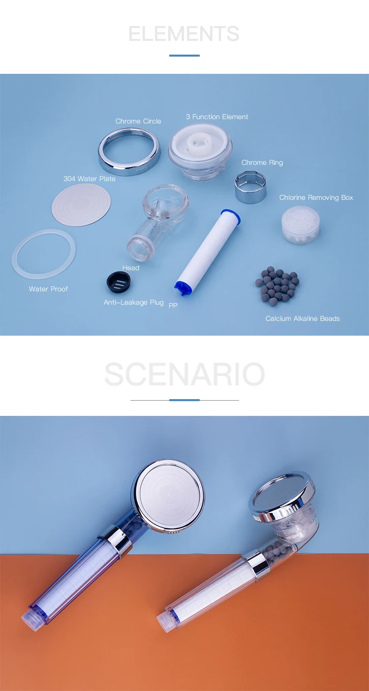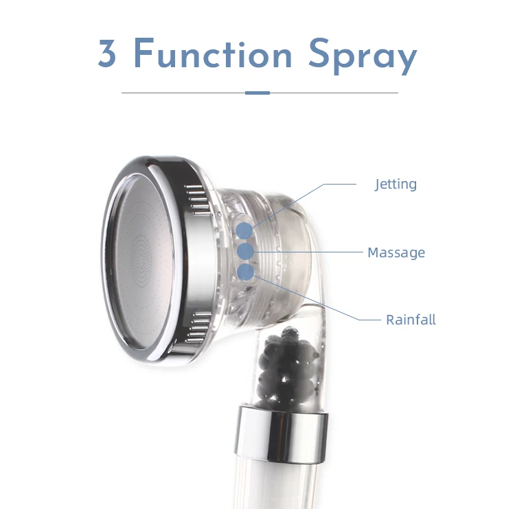 water saving High Quality PC 3 Functions Bathroom accessories hand Shower Head faucet with PP Filter alkaline beads anion beads