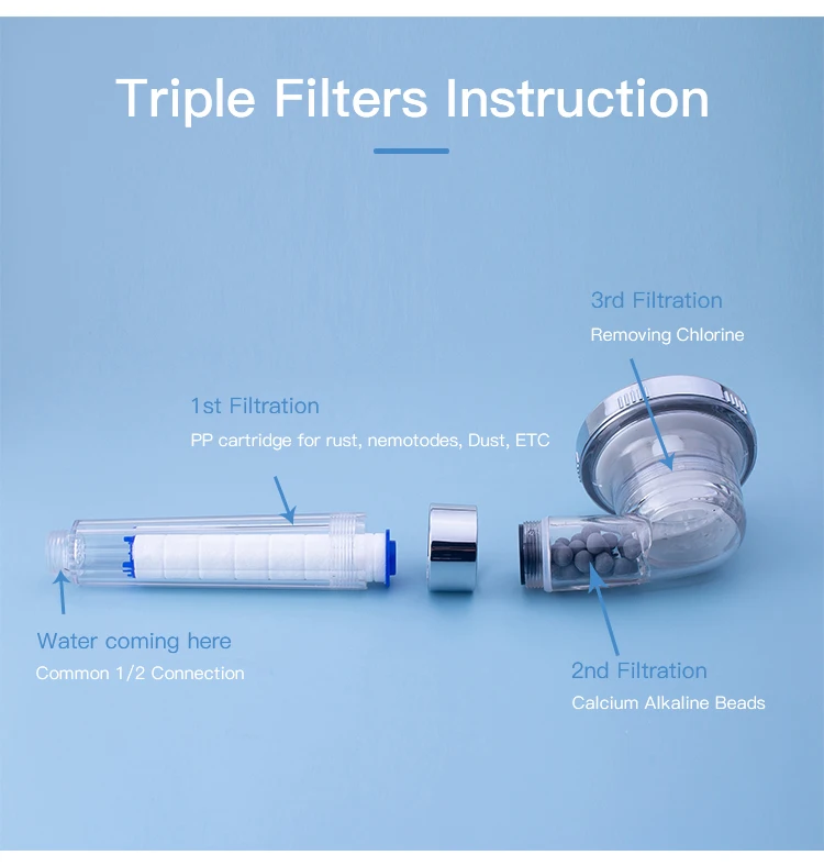 Home Bathroom Products,Sinks Bathroom Faucet & Shower Bathtub & Shower Faucet Accessories Xuzhou Xinpaez Water Purification Equipment Co., Ltd. water saving High Quality PC 3 Functions Bathroom accessories hand Shower Head faucet with PP Filter alkaline beads anion beads
